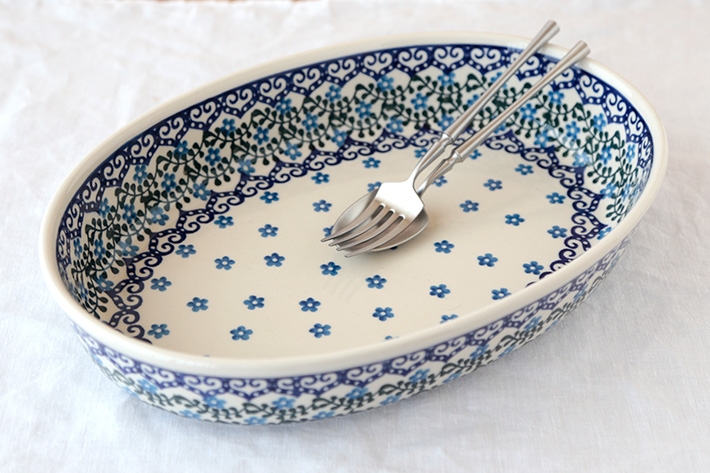 TOPテーマから探す もうすぐ取り扱い終了 欧米標準の大きなオーブンウェア どっしりとした大きなサイズのオーブン皿です。外側だけでなく内側にも施されている絵付けはポーリッシュポタリーならでは。たっぷりサイズは大皿料理にも相応しく、大勢の集まりにとても豪華な雰囲気をもたらします。*日本製の標準的なオーブンには入らないと思われますので、サイズを確認の上、お求めください。 オーブン皿・オーバル・大36cm(C296-935) 価格: ¥33,000 (税込) 販売期間: 数量: 個 在庫: × 在庫 × 返品についての詳細はこちら レビューはありません 商品詳細 大きさ 約35.2cm×24.3cm 高さ 約6.5cm 製造元 Ceramika Artystyczna社製(ツェラミカ・アルティスティチナ) 生産国 ポーランド