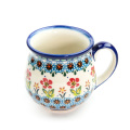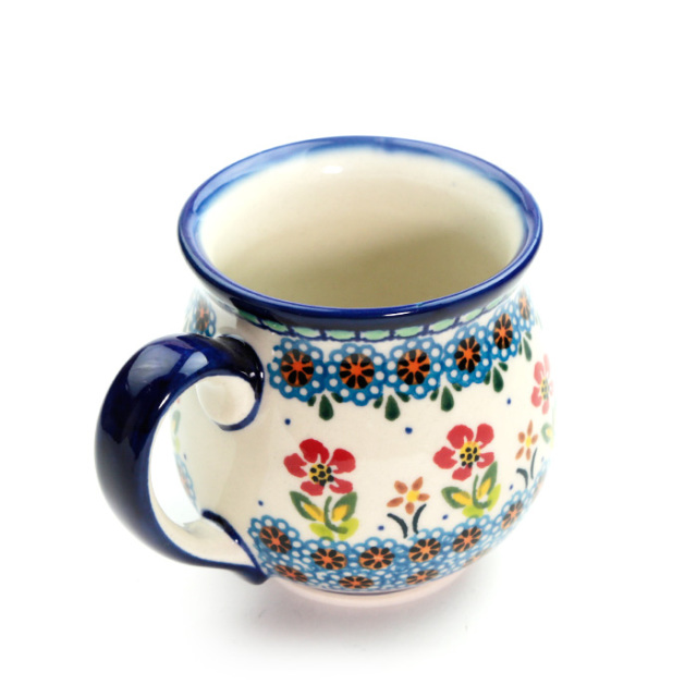 飲み口の下の部分がくびれて、膨らんだボディ。ポーランド食器の特徴的な形状で、最も人気のある形のマグカップ。大きなサイズでミルクをたっぷり入れて飲みたいカフェオレやスープカップとしてのご利用もおすすめ。
