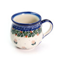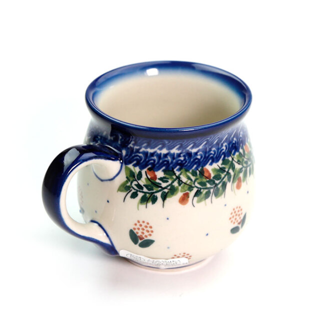 飲み口の下の部分がくびれて、膨らんだボディ。ポーランド食器の特徴的な形状で、最も人気のある形のマグカップ。大きなサイズでミルクをたっぷり入れて飲みたいカフェオレやスープカップとしてのご利用もおすすめ。