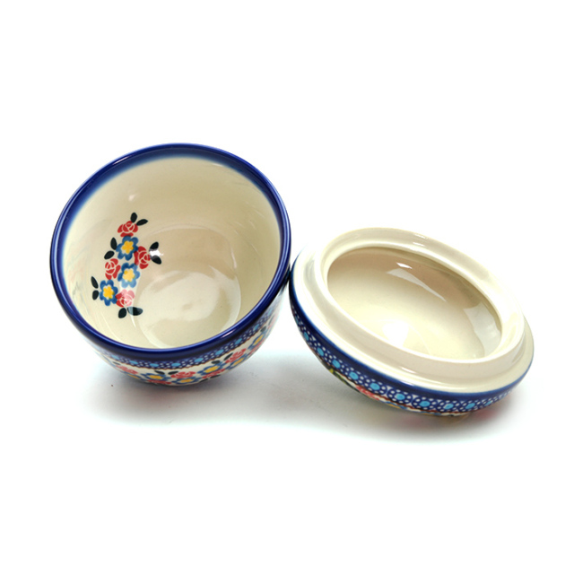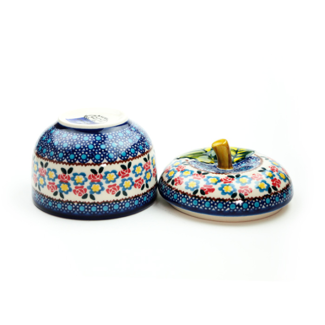 ポーリッシュポタリーのモティーフとしてとてもポピュラーな「ばら」。ただしその意匠化においては製造元毎に特色が見られるのも面白いところです。写実的であったり、筆で黒く縁取りされることが多いばらのデザインですが、カリヒの赤いバラの花のデザインは、ミニマルでシンプルな可愛らしさが最大の魅力です。