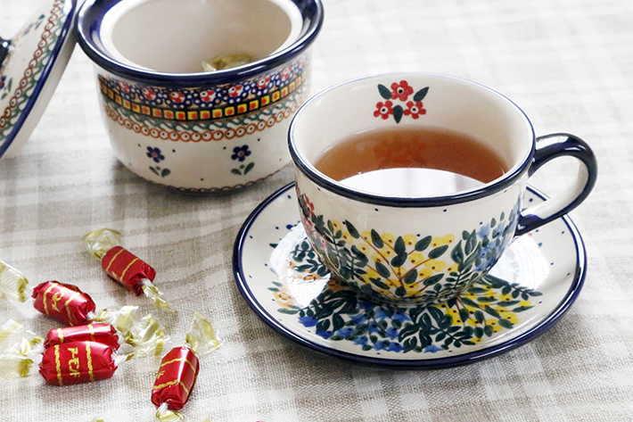 丸みを帯びたシェイプと飲み口に向かった美しい曲線は、優雅さと可愛らしさを併せ持ち、大切なお客様にも楽しんでいただける素敵な時間を演出します。ポーリッシュポタリーらしく柄を違えて揃えるのもおすすめ。様々なパターンデザインを鑑賞しながらの会話も弾みます。忙しい朝や一人で過ごす午後の時間も気分を上げてくれるカップ&ソーサーで、毎日を美しく過ごしたいですよね!