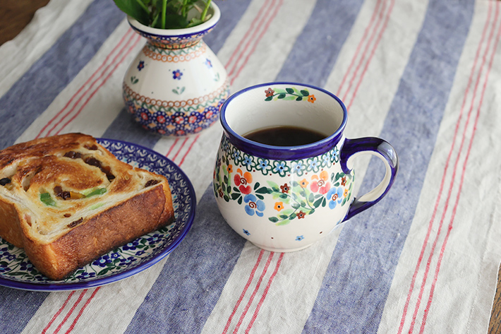 カップの胴がストレートなものと比べると一見珍しい形ですが、ポーリッシュマグの飲み口は口元に寄り添うように作られているので、使ってみるとその良さを実感していただけます。