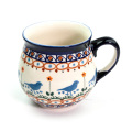飲み口の下の部分がくびれて、膨らんだボディ。ポーランド食器の特徴的な形状で、最も人気のある形のマグカップ。大きなサイズでミルクをたっぷり入れて飲みたいカフェオレやスープカップとしてのご利用もおすすめ。