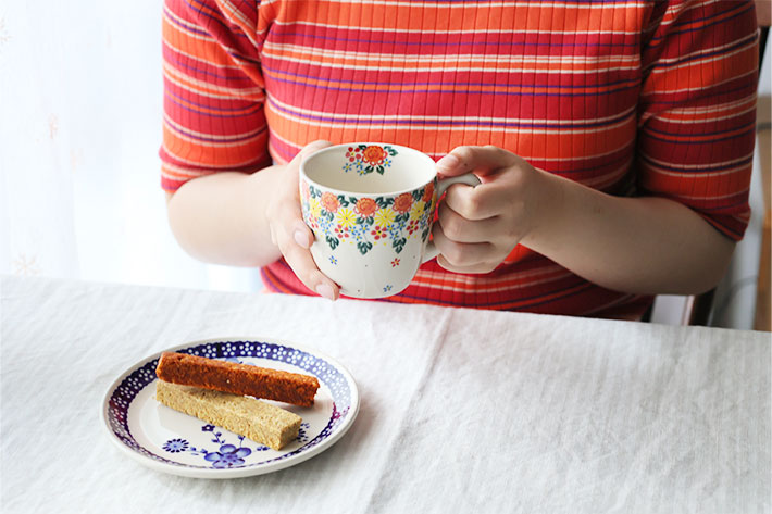 飲み口から下に窄(すぼ)まったフォルムは、素朴で可愛らしい印象です。小さい頃に使っていた歯磨き用のコップってこんな形じゃなかったっけ、そんなノスタルジックな雰囲気があります。懐かしいようなホッとするような、心が温まる形だと思います。