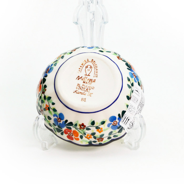 実は日本で手に入るミレナのパターンデザインでは、この柄が最もポピュラーだと以前ミレナの社長さんから聞いたことがあります。オレンジ色の花が中心になっているデザインは、ブルーの小さな花が中心になっているB1B柄とは色違い。涼しげなブルーとは対照的にほんのりと温かい色使いです。ペアで使って微妙な違いを楽しむのもおすすめです。