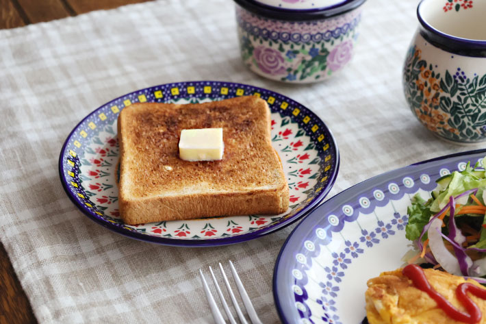16cm前後のプレートと同様、20cm前後のサイズもなにかと重宝します。前菜の一皿を格好良く装うにはぴったり。また、いわゆる「食パン」が丁度収まる大きさで、トーストやパンケーキも安心して置くことが出来ます。和の食卓では、アジの開きなどにも合う万能皿です。