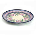 ポーリッシュポタリーではあまり見かけない紫色がこのパターンデザインの特徴です。ばらの花のモティーフは非常にポピュラーですが、手描きのアート柄によくみられる黒い縁取りが無く、ばらの花弁の意匠化が素晴らしいところがチャームポイント。全体として紺色、紫色、余白がバランスの良い仕上がりに結びついていることも、この絵柄が支持されている理由となっています。