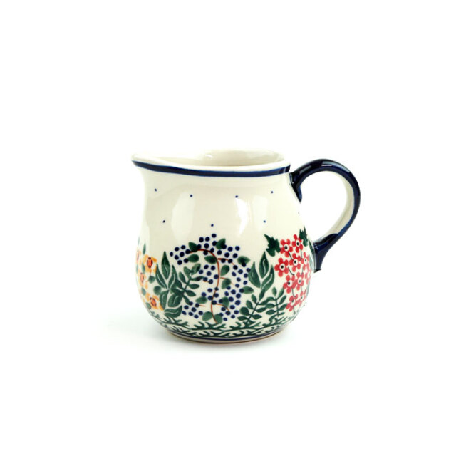 容量が約0.22Lのちょっと大きめのミルクピッチャーです。紅茶に添えるミルク入れ、アイスティーに添えるガムシロップを入れるのに程よい大きさです。ティーポットとお揃いで使っても楽しいアイテム。小さなスプーンやケーキのフォーク入れにするのもおすすめです。