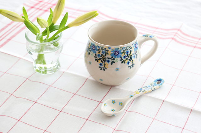 お砂糖をすくったり、ヨーグルト、ムース、プリンを食べたり、ディップに添えたり、様々なシーンで活躍してくれるポーリッシュポタリーの愛らしいスプーンです。表も裏も絵付けされており、手仕事ならではの繊細な技術が凝縮されています。