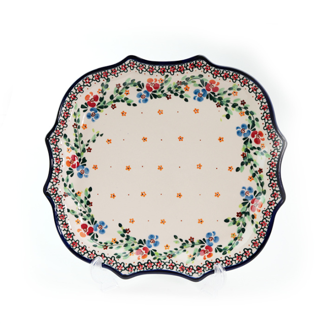 優美な曲面で縁取られた美しい盛皿です。ティータイムには沢山のケーキやビスケットを乗せたり、ディナーテーブルでは牡蠣を並べたり、手巻き寿司の具を盛り付けたりと、様々な食材や料理を一層華やかに彩ります。集いの席にも相応しい特別感のある一枚です。
