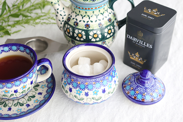 ぷっくりしたフォルムがとっても可愛いシュガーポット。ふたにスプーンを入れる溝の無いタイプなので、お砂糖入れとしてだけではなく、幅広くご利用いただけます。ジャム、梅干し、佃煮、漬物などを入れて意表を突いた楽しみ方もおすすめです。ふたを開けると中底にも小さなモティーフが描かれていて、可愛らしさも満点です。