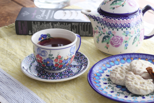 丸みを帯びたシェイプと飲み口に向かった美しい曲線は、優雅さと可愛らしさを併せ持ち、大切なお客様にも楽しんでいただける素敵な時間を演出します。ポーリッシュポタリーらしく柄を違えて揃えるのもおすすめ。様々なパターンデザインを鑑賞しながらの会話も弾みます。忙しい朝や一人で過ごす午後の時間も気分を上げてくれるカップ&ソーサーで、毎日を美しく過ごしたいですよね!