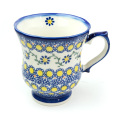 ケルセンでは定番のU006柄の青いスタンプを黄色に置き換えたようなパターンデザイン。グリーンの蔓で結ばれた花が愛らしく、青と黄色のコントラストが独特な雰囲気を出しています。VENA社のヴロツワフの直営店でも人気の絵柄だそうです。