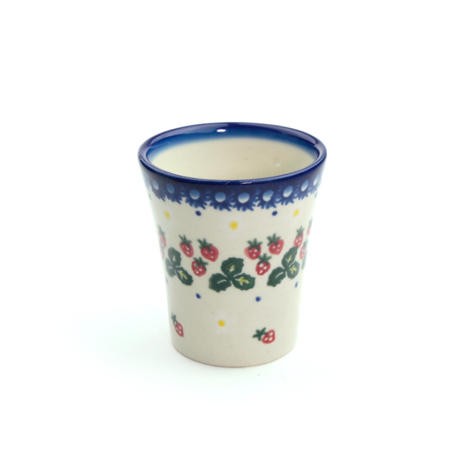小ぶりの可愛い陶器のカップ。寒い冬の日にホットワインを飲むにもぴったりで、ポーランド本国では「ワインカップ」として作られています。小ぶりな大きさのカップは小さな手の方にも馴染みやすく、ぽってりした厚みは熱を逃しにくいので、温かい日本茶を淹れる時にもおすすめです。