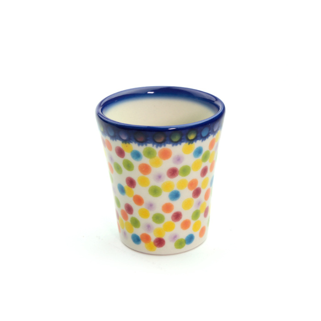 小ぶりの可愛い陶器のカップ。寒い冬の日にホットワインを飲むにもぴったりで、ポーランド本国では「ワインカップ」として作られています。小ぶりな大きさのカップは小さな手の方にも馴染みやすく、ぽってりした厚みは熱を逃しにくいので、温かい日本茶を淹れる時にもおすすめです。
