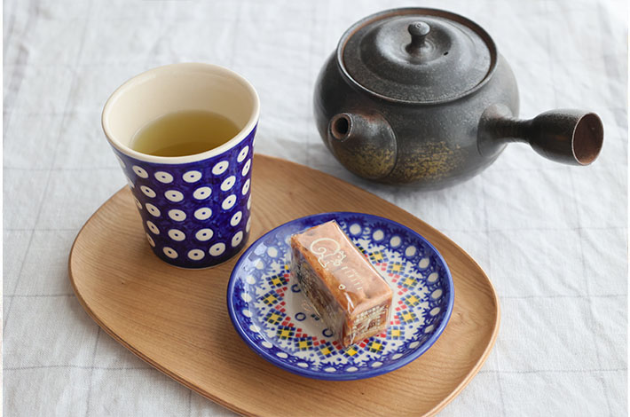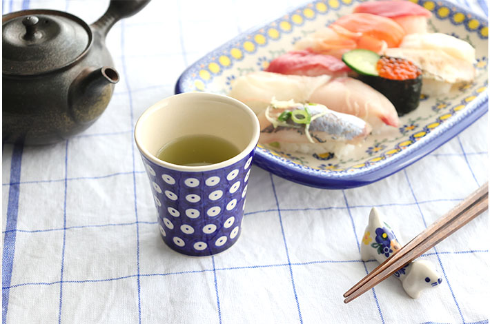 小ぶりの可愛い陶器のカップ。寒い冬の日にホットワインを飲むにもぴったりで、ポーランド本国では「ワインカップ」として作られています。小ぶりな大きさのカップは小さな手の方にも馴染みやすく、ぽってりした厚みは熱を逃しにくいので、温かい日本茶を淹れる時にもおすすめです。