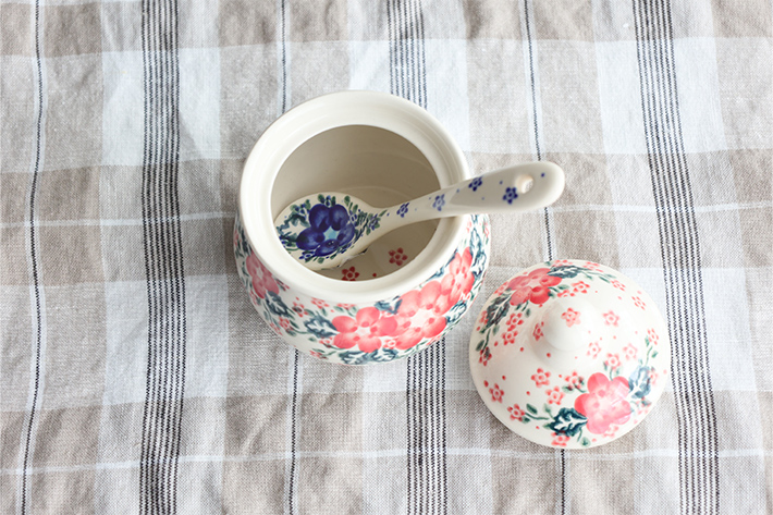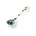 手仕事の粋を感じるポーリッシュポタリーのスプーンです。表と裏のどちらにも細かな絵付けが施され、プリントされたものと比べるまでもなく高級感を味わっていただけます。プリンやゼリーなどのデザートに添えたり、ジャムをすくったり、大きなマグにスープを注いでこのスプーンを添えても絵になる愛らしさです。