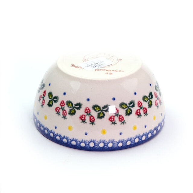 シリアルボウル程の大きさで、底が平らになっているボウルです。英名では「Venus bowl」という名前が付けられています。平らな部分の直径は約8cmあります。手頃な大きさで、スープやシチューなどの汁物から、サラダや煮込み料理など、普段使いにも最適です。内側(見込み)にも丁寧に絵付けされているポーリッシュポタリーらしい器で、その使い勝手の良さでロングセラーとなっています。