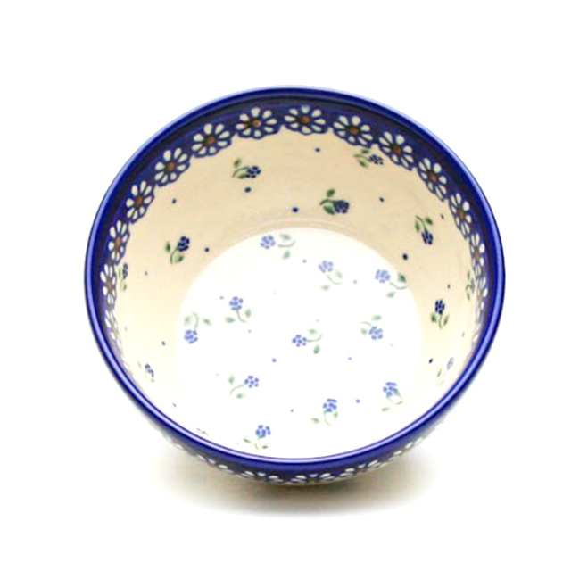 シリアルボウル程の大きさで、底が平らになっているボウルです。英名では「Venus bowl」という名前が付けられています。平らな部分の直径は約8cmあります。手頃な大きさで、スープやシチューなどの汁物から、サラダや煮込み料理など、普段使いにも最適です。内側(見込み)にも丁寧に絵付けされているポーリッシュポタリーらしい器で、その使い勝手の良さでロングセラーとなっています。