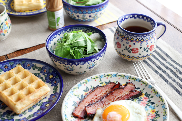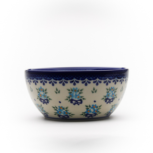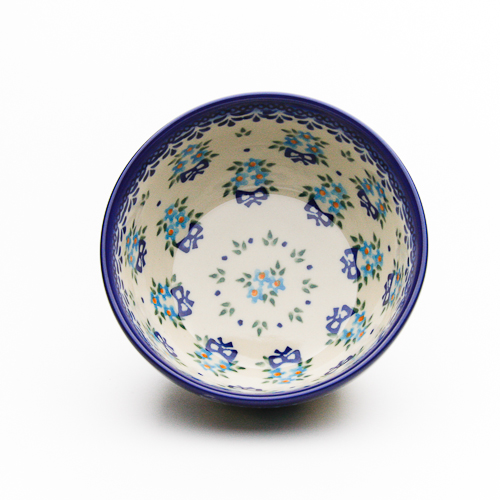シリアルボウル程の大きさで、底が平らになっているボウルです。英名では「Venus bowl」という名前が付けられています。平らな部分の直径は約8cmあります。手頃な大きさで、スープやシチューなどの汁物から、サラダや煮込み料理など、普段使いにも最適です。内側(見込み)にも丁寧に絵付けされているポーリッシュポタリーらしい器で、その使い勝手の良さでロングセラーとなっています。