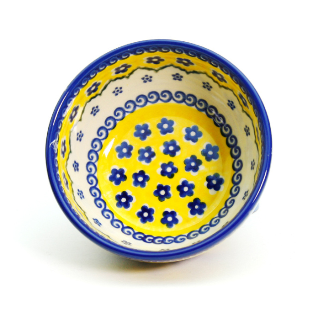 シリアルボウル程の大きさで、底が平らになっているボウルです。英名では「Venus bowl」という名前が付けられています。平らな部分の直径は約8cmあります。手頃な大きさで、スープやシチューなどの汁物から、サラダや煮込み料理など、普段使いにも最適です。内側(見込み)にも丁寧に絵付けされているポーリッシュポタリーらしい器で、その使い勝手の良さでロングセラーとなっています。