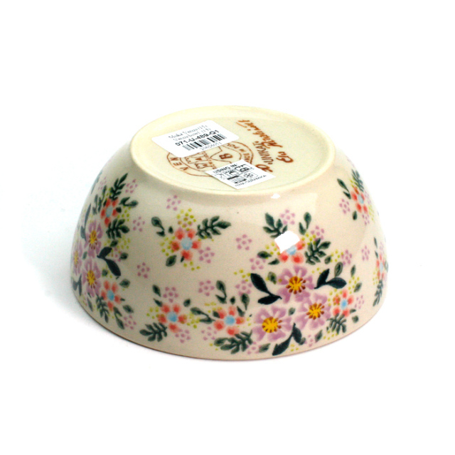 シリアルボウル程の大きさで、底が平らになっているボウルです。英名では「Venus bowl」という名前が付けられています。平らな部分の直径は約8cmあります。手頃な大きさで、スープやシチューなどの汁物から、サラダや煮込み料理など、普段使いにも最適です。内側(見込み)にも丁寧に絵付けされているポーリッシュポタリーらしい器で、その使い勝手の良さでロングセラーとなっています。