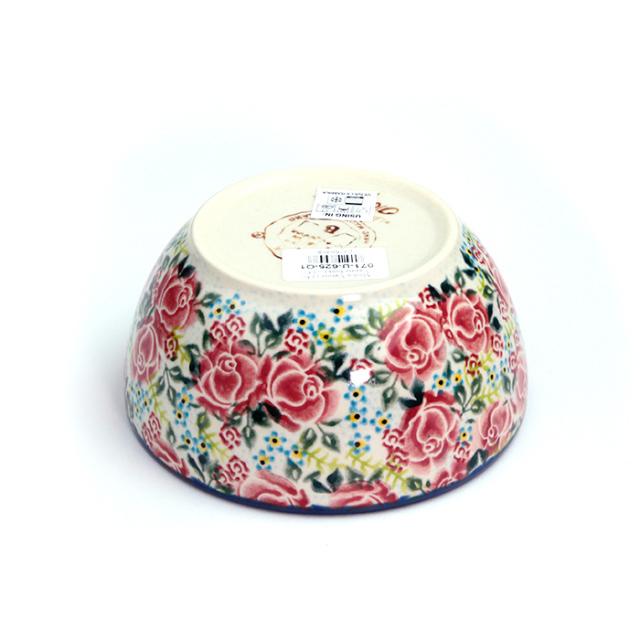 シリアルボウル程の大きさで、底が平らになっているボウルです。英名では「Venus bowl」という名前が付けられています。平らな部分の直径は約8cmあります。手頃な大きさで、スープやシチューなどの汁物から、サラダや煮込み料理など、普段使いにも最適です。内側(見込み)にも丁寧に絵付けされているポーリッシュポタリーらしい器で、その使い勝手の良さでロングセラーとなっています。