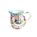 愛くるしいうさぎとフローラルな背景が醸し出すふんわりとした雰囲気のパターンデザインです。お花に埋もれてお昼寝をしているような表情も、ひとつひとつが筆描きされています。紺の縁取りが多いポーリッシュポタリーでは珍しい、水色の縁取りも特徴的です。