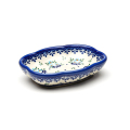 エレガントなフォルムのソープディッシュ。側面と表面とに絵付けが施されているハンドメイドの美しいソープディッシュは、世界的にも稀少です。殺風景な洗面台もこれひとつで華やぎ、樹脂製にはない陶器製ならではの質感は、センスが光るこだわりのアイテムです。ちょっとした贈り物にも最適。