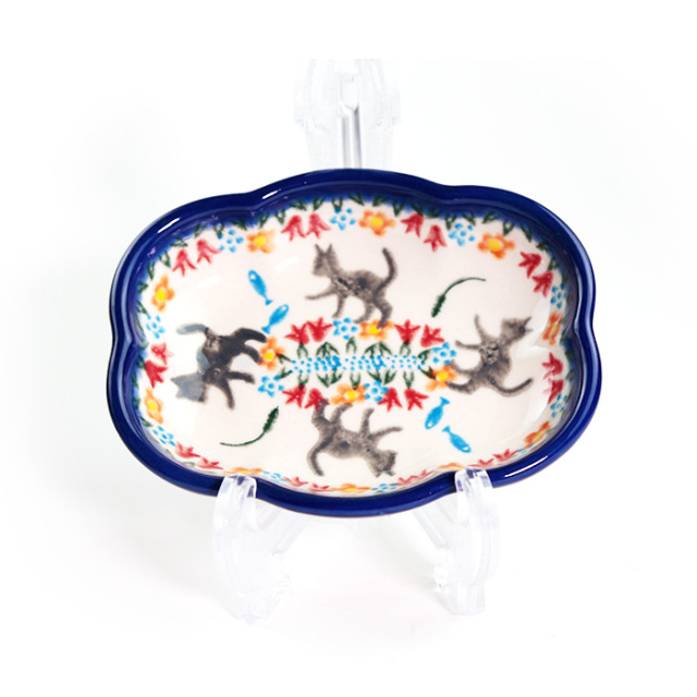 エレガントなフォルムのソープディッシュ。側面と表面とに絵付けが施されているハンドメイドの美しいソープディッシュは、世界的にも稀少です。殺風景な洗面台もこれひとつで華やぎ、樹脂製にはない陶器製ならではの質感は、センスが光るこだわりのアイテムです。ちょっとした贈り物にも最適。