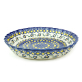 直径は約25cmのケーキ用のキャセロールです。大きめのケーキやタルトを焼くことができます。内側に描かれた絵柄とサイドの絵付けの美しさは、ポーリッシュポタリーならでは。優雅な大きさと立ち上がりのフリル部分の美しいディテールもテーブルを華やかに彩ってくれる要素となっています。
