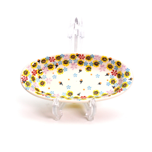 少量のお茶菓子やチョコレート、ちょっとしたおつまみや果物、残った少しだけの料理、お漬物、辛子明太子、1人分の卵焼き、・・・少し深さもあるの楕円形のお皿は何かと使い勝手が良い事に気が付きました。可愛いという衝動でお求めの方も頷く大変実用的な器です。