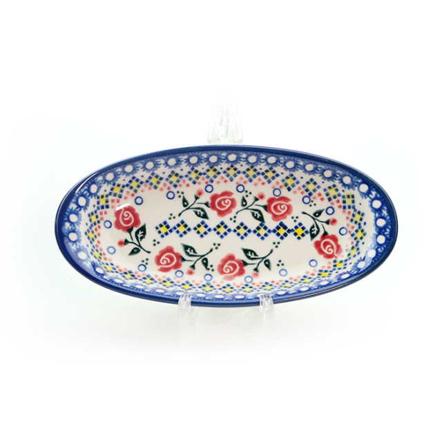 少量のお茶菓子やチョコレート、ちょっとしたおつまみや果物、残った少しだけの料理、お漬物、辛子明太子、1人分の卵焼き、・・・少し深さもあるの楕円形のお皿は何かと使い勝手が良い事に気が付きました。可愛いという衝動でお求めの方も頷く大変実用的な器です。