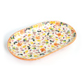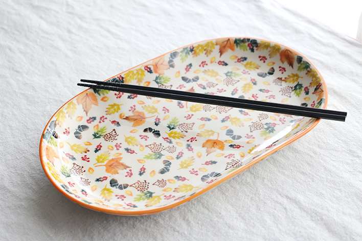 オードブルを盛り合わせたり、一口サイズのサンドウィッチや握り寿司を並べたり、パーティを締めくくるスイーツを装ったり、そんな使い方を思い起こさせる大きなプレート。少し深さもあるので、汁気のあるパスタや中華の大皿料理、大ぶりのフルーツを見栄え良く盛り付けられます。