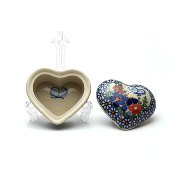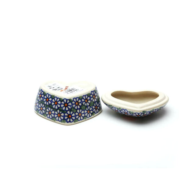 小さなハート形の小物入れ。ティータイムの角砂糖入れにしたり、キャンディやボンボン入れに使っても。ドレッサーに置いてアクセサリーを入れたり、美容液の小さなポーションを入れても素敵に見えます。贈り物としても喜ばれる可愛らしい容器です。