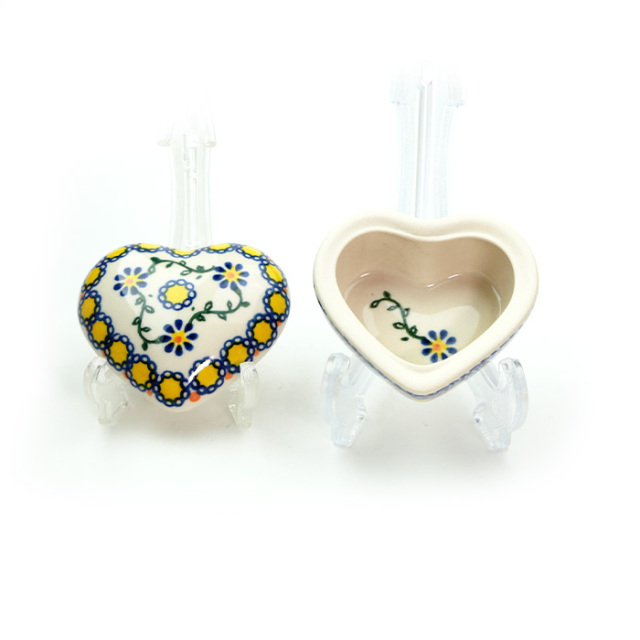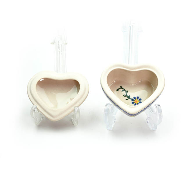 小さなハート形の小物入れ。ティータイムの角砂糖入れにしたり、キャンディやボンボン入れに使っても。ドレッサーに置いてアクセサリーを入れたり、美容液の小さなポーションを入れても素敵に見えます。贈り物としても喜ばれる可愛らしい容器です。