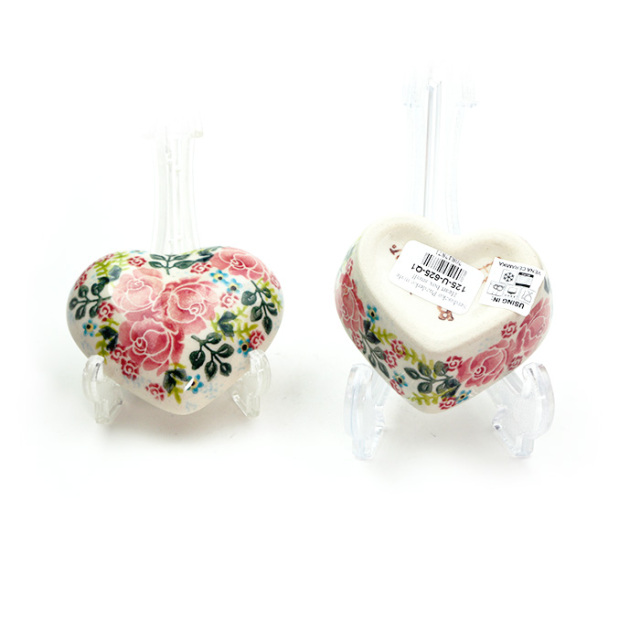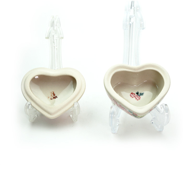 小さなハート形の小物入れ。ティータイムの角砂糖入れにしたり、キャンディやボンボン入れに使っても。ドレッサーに置いてアクセサリーを入れたり、美容液の小さなポーションを入れても素敵に見えます。贈り物としても喜ばれる可愛らしい容器です。