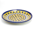 濃い黄色とくっきりとした紺色のスタンプで構成された意匠は、ポーリッシュポタリーの多数派である藍色ベースの配色とはちょっと違った雰囲気です。緑色で縁取りされた白い部分がレースのように見え、この柄のお洒落なアクセントになっています。