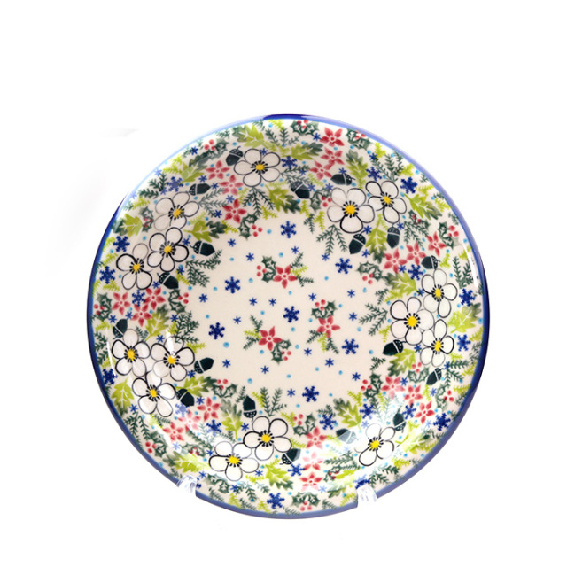 よく見ると白い花びらの縁取りは絵筆で描かれ、花びらにも白い絵具が使われていることが分かります。柊(ひいらぎ)、松葉、雪の結晶が散りばめられている、ウィンターシーズンを意識したデザインです。