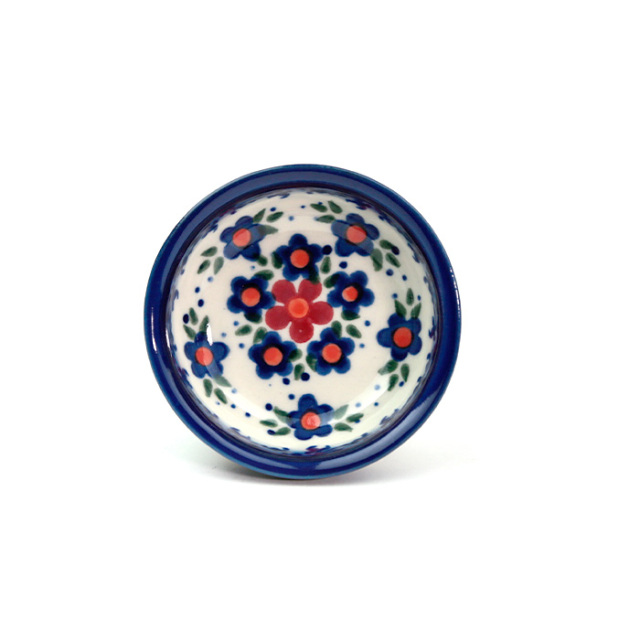 豆鉢サイズの可愛らしいボウルは、ポーリッシュポタリーらしいぽってりとした優しい味わいに満ちています。醤油や薬味、天ぷらに添える塩、珍味などを入れる器として、和の食卓でも重宝します。同じ絵柄でも、大きな器と小さい器とでは描かれ方が違ってくる面白さがあります。