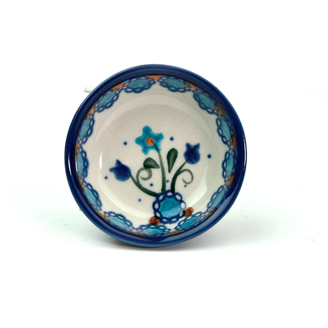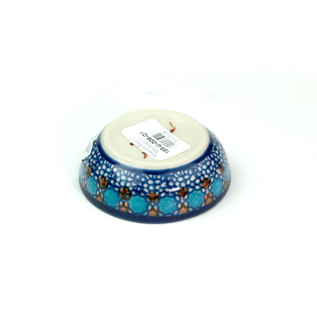 豆鉢サイズの可愛らしいボウルは、ポーリッシュポタリーらしいぽってりとした優しい味わいに満ちています。醤油や薬味、天ぷらに添える塩、珍味などを入れる器として、和の食卓でも重宝します。同じ絵柄でも、大きな器と小さい器とでは描かれ方が違ってくる面白さがあります。
