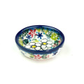 豆鉢サイズの可愛らしいボウルは、ポーリッシュポタリーらしいぽってりとした優しい味わいに満ちています。醤油や薬味、天ぷらに添える塩、珍味などを入れる器として、和の食卓でも重宝します。同じ絵柄でも、大きな器と小さい器とでは描かれ方が違ってくる面白さがあります。
