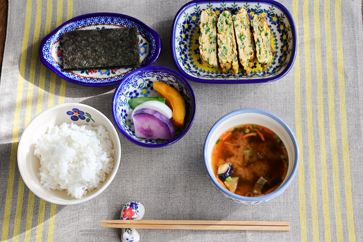 底の部分が直径6cm程度フラットになっています。3口分程度の副菜や1人分のお漬物を装うのにぴったりで小鉢のように使うことができます。ポーリッシュポタリーらしく、側面にも内側にも手作業による絵付けが施されていて、小さなボウルといえども日々使う中で愛着が湧いてくる魅力的な器です。