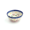 底の部分が直径6cm程度フラットになっています。3口分程度の副菜や1人分のお漬物を装うのにぴったりで小鉢のように使うことができます。ポーリッシュポタリーらしく、側面にも内側にも手作業による絵付けが施されていて、小さなボウルといえども日々使う中で愛着が湧いてくる魅力的な器です。