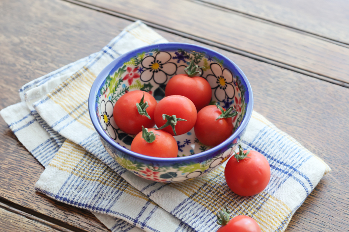 底の部分が直径6cm程度フラットになっています。3口分程度の副菜や1人分のお漬物を装うのにぴったりで小鉢のように使うことができます。ポーリッシュポタリーらしく、側面にも内側にも手作業による絵付けが施されていて、小さなボウルといえども日々使う中で愛着が湧いてくる魅力的な器です。