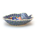 本名は「オークリーフ」。ヨーロッパ楢という落葉樹の葉がかたどられています。木材はワインやウィスキーの樽に使われたり家具の原料としても有名ですが、ヨーロッパでは葉の形は紋章や勲章に使われたり、アクセサリーのモティーフになったりする縁起の良いもので、昔から親しまれてきた形です。葡萄などのフルーツにはまさにぴったりと思えるサイズ感。ひとつあっても格好のつくお皿なので、贈り物や引き出物にも相応しい食器です。