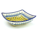 黄色の配色による元気で楽しいイメージの絵柄です。遠目から見ても目立つ印象的なスタンプワークがこの柄の魅力。黄色の中にあるポーリッシュポタリーらしい紺色の小さな花柄のスタンプは、どこかあどけない雰囲気で、可愛らしさの源になっています。
