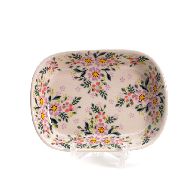 ちょっと深さのある長方形のお皿。製造元での名称は「Olives rest」。おにぎりが2個位入る大きさです。深さがあるので汁気のある煮魚や揚げびたしなど、ちょっとしたおかずにも対応してくれます。複数枚あっても重ね易く、何かと応用のきくマルチな器はケルセンのロングセラーです。