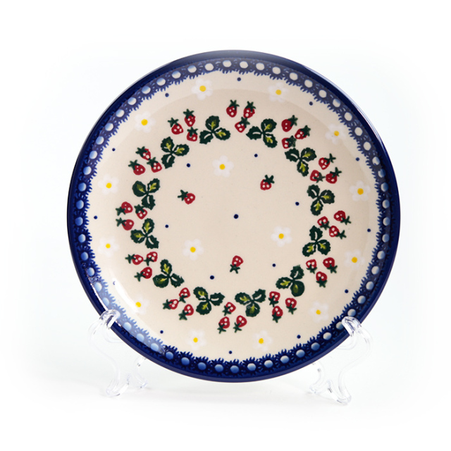 ポーランドでもいちごはとても好まれる身近な果物です。リアルな葉っぱの形状と、小さないちごがあどけない印象のパターンデザインは、素朴でほっこりした心和む雰囲気です。