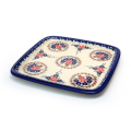 お洒落な20cm四方の角皿。製造元での名称は「Dawid dessert plate」。ケーキを1台載せたりもできますし、小さなケーキを幾つか載せても取りやすく扱いやすいお皿です。ラウンドのプレートと共に使うことで、テーブルにアクセントが生まれ、スタイリッシュなセッティングを可能にしてくれる優れモノ。フラットなのでかさ張らず一枚あるだけでもとても便利で、絵画的な美しさもあるので使わない時には皿立てを使って飾っている方も多い素敵な1枚です。
